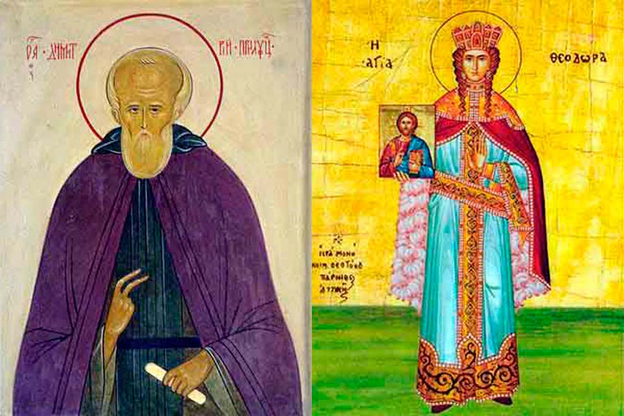 Праведная царица Феодора была супругой греческого царя Феофила-иконоборца (829 — 842), но не разделяла ереси мужа и тайно почитала святые иконы. После его смерти, когда святая Феодора управляла государством вместо малолетнего сына Михаила, она восстановила иконопочитание, возвратила низложенного святого Патриарха Мефодия и созвала Собор, на котором иконоборцы были преданы проклятию. Ею установлено празднование этого события — Торжество Православия, которое ежегодно совершается в первое воскресенье Великого поста. Праведная Феодора много сделала для Святой Церкви и тем, что воспитала в сыне Михаиле твердую преданность Православию.