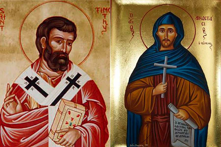 Преподобномученик Анастасий Персянин был сыном персидского волхва Вава. В язычестве он носил имя Магундат и служил в войсках персидского царя Хозроя II, который в победоносной войне против греков разграбил в 614 году святой город Иерусалим и увез в Персию Животворящий Крест Господень. Великие чудеса, совершавшиеся от Креста Господня, поражали персов. Сердце юноши Магундата загорелось желанием узнать подробно о великой святыне. Расспрашивая всех о Святом Кресте, юноша узнал, что на нем претерпел распятие Сам Господь для спасения людей. Он ознакомился с истинами христианской веры в городе Халкидоне, где на некоторое время остановились войска Хозроя,. крестился с именем Анастасий, а затем принял монашество и провел семь лет в иноческих подвигах и трудах в одном из Иерусалимских монастырей.