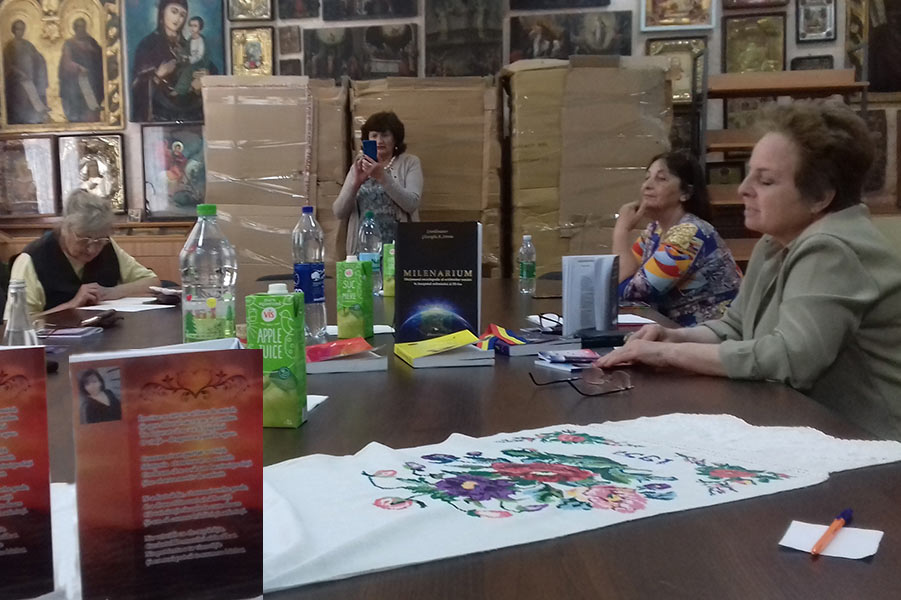 Raisa Plăieșu, moderatoarea Cenaclului, a prezentat recentele sale apariții literare – cartea cu poezii „Lumina Darului din dar” și cartea pentru copii „Brăduțul”.