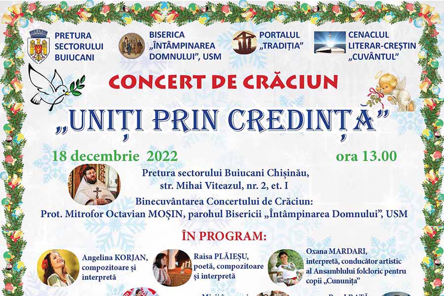 Duminică, la 18 decembrie, cu începere la ora 13.00 în sala Preturii sectorului Buicani, municipiul Chișinău, se va desfășura Gala Laureaților Concursului creștin pentru elevi „Uniți prin credință” dedicat sfântului cuvios Paisie Velicicovschi – 300 de ani de la naștere.