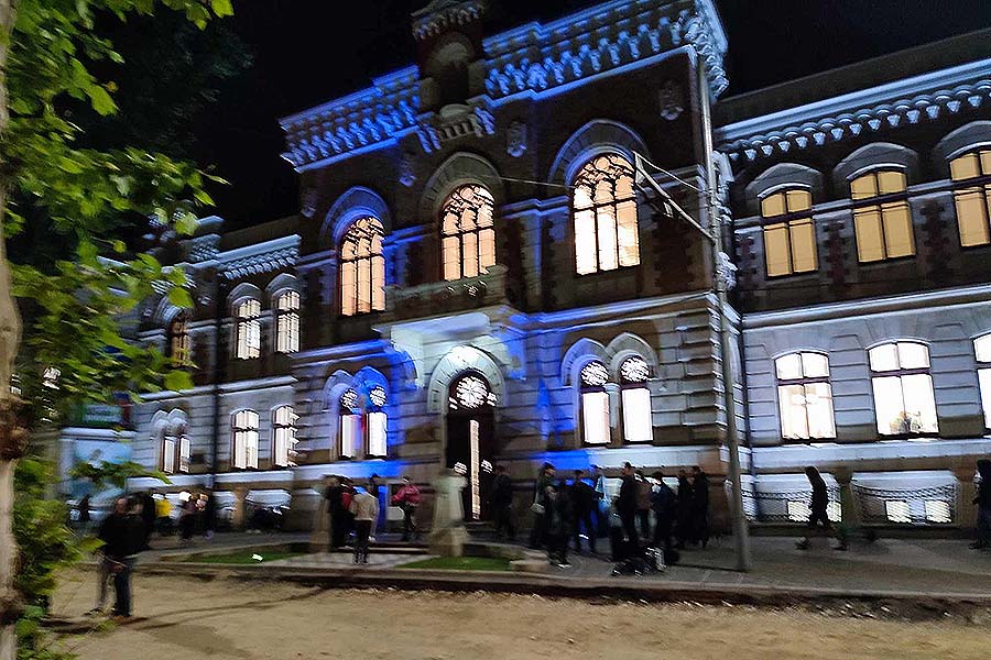 O secvență și poate cea mai interesantă a fost, când spre miezul nopții vizitatorii MNAM au admirat o proiecție impresionantă de lumini, care a avut loc în ograda Muzeului Național de Artă al Moldovei, unde zeci de oameni urmăreau imaginile neuniforme captivante într-o muzică sumbră, clasică, care redau figuri de epocă arhitecturale trecute prin labirintele timpului, un joc de imagini fascinante care te concentrau total în așteptarea permanenă a noilor imagini ce se reflectau în culori pe clădirea muzeului din ograda sa.