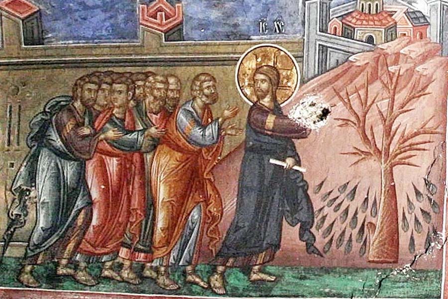 Конечно, в эти дни Господь говорил о том, что имело особое, принципиальное значение для жизни людей, для их спасения. В одном из первых Своих обращений Спаситель уподобил людей смоковнице – инжирному дереву, которое имеет пышную и красивую листву. Он говорил о том, как одна из таких замечательных смоковниц, радовавшая всех своей красотой, оказалась бесплодной: на ней не было ни одной смоквы. Всякое же дерево, не приносящее плода доброго, срубают и бросают в огонь (Мф. 3:10; 7:19). Образ бесплодной смоковницы является очень глубоким, он говорит нам о том, что принципиально важно для нашей религиозной жизни – как в те далекие времена, так и сегодня.